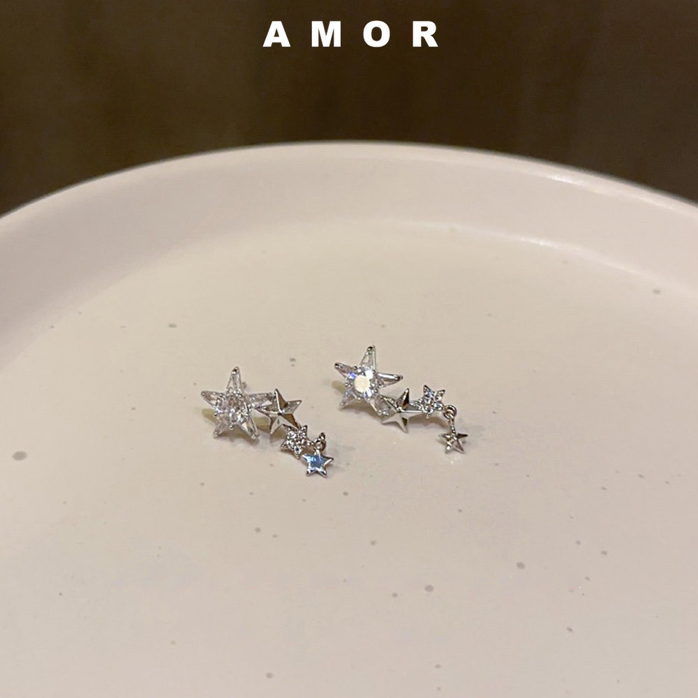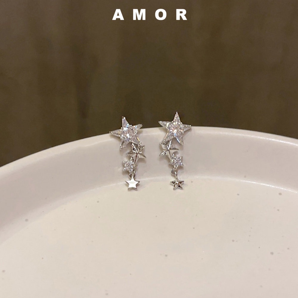 Detail Anting Berlian Lapis Perak925 Y2K Bintang Gaya Panjang Wanita