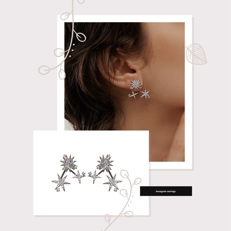 Detail Anting Bintang Delapan Awn Mewah Tren Baru Desain Pribadi Super Flash Karbon Tinggi Berlian Zirkon Anting-Anting