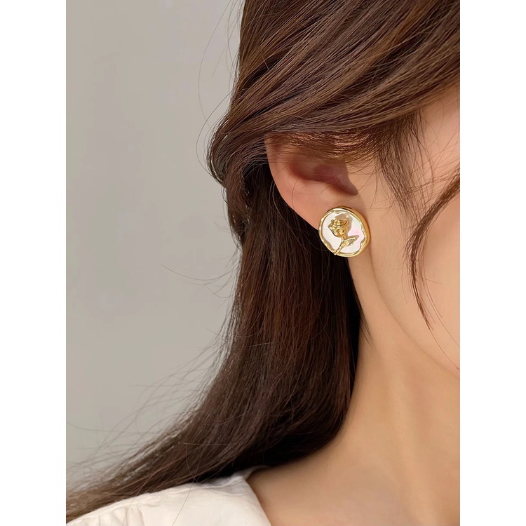 Detail Anting Bulat Motif Bunga Mawar Korea Bahan Alloy Aksesoris Fashion Wanita Kualitas Premium ANT106