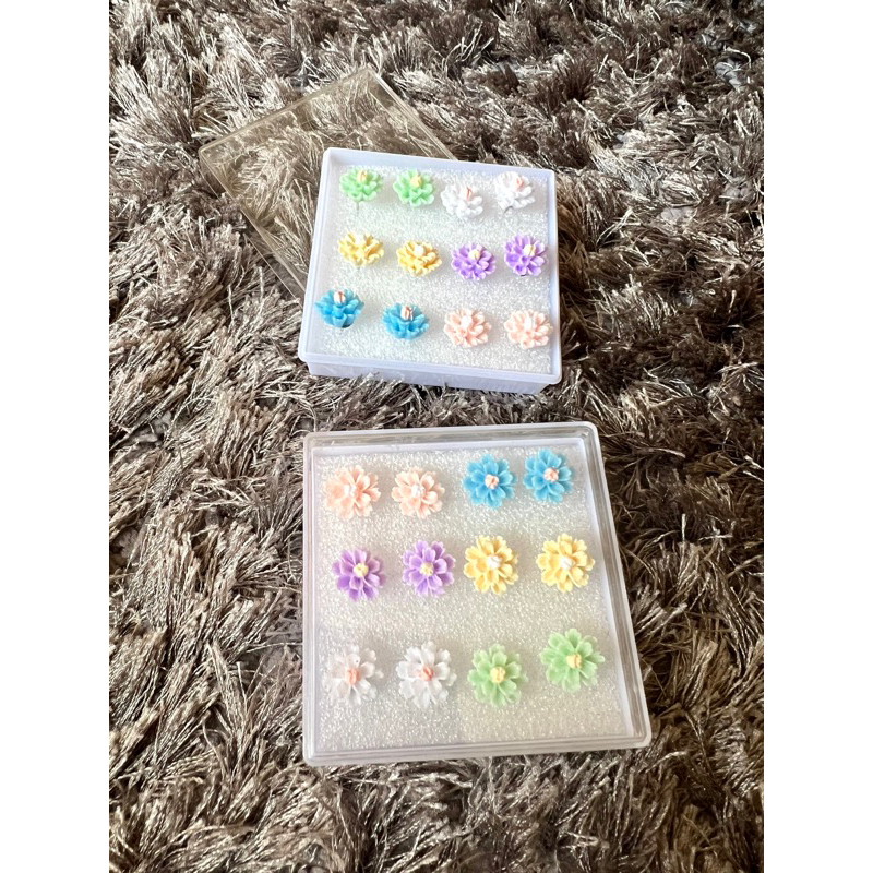1kotak isi 6set berwarna campur. Pengunci anting terdapat di bawah bantalan spons 12pc