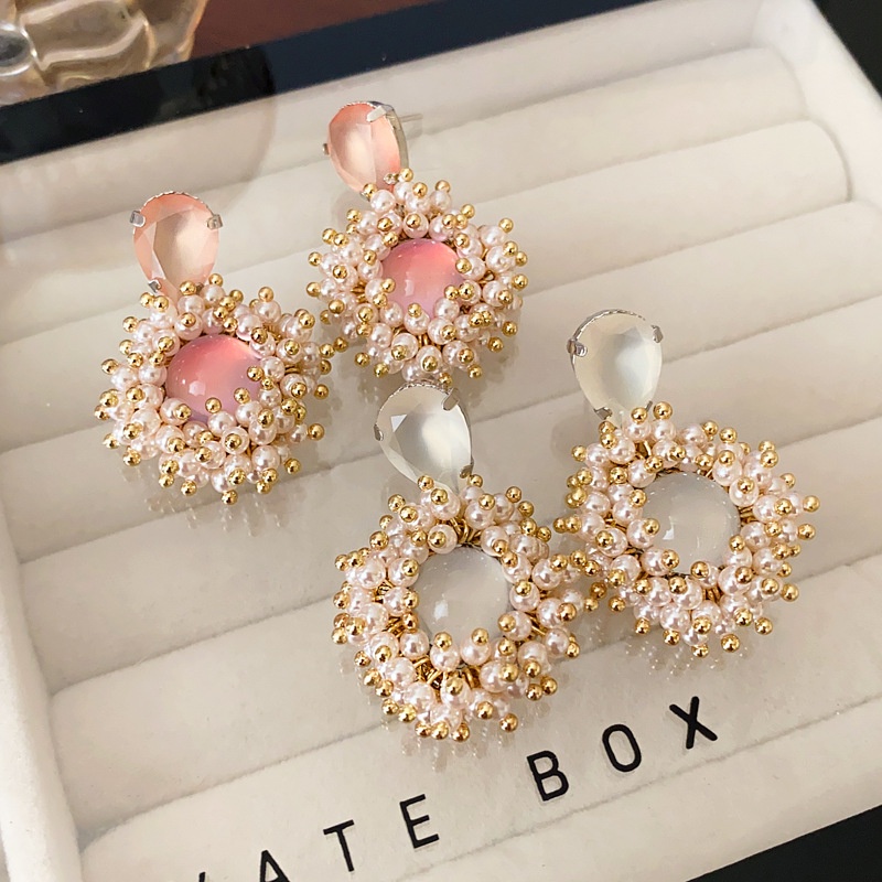 Detail Anting Bunga Berlian Hias Mutiara Imitasi Modis Anting Gaya Manis Perempuan
