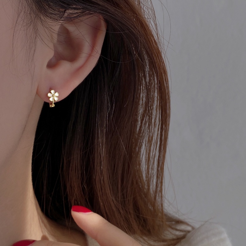 Detail Anting Bunga Perak925 Anting Sederhana Anting Gaya Korea Klip Telinga Anting Gadis Manis Kecil
