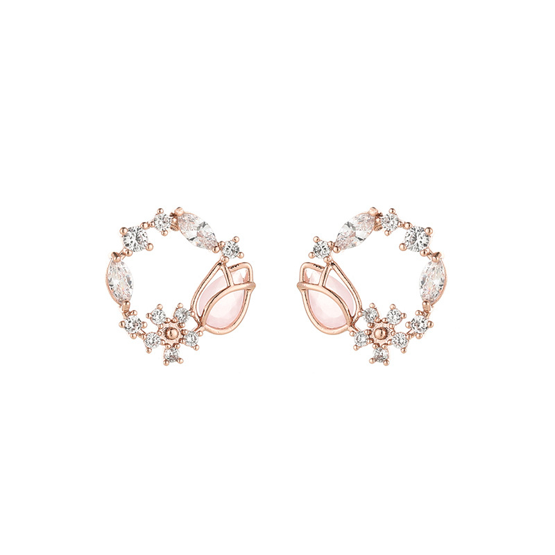 Detail Anting Bunga Sakura Gadis Bunga Shell Stud Zirkon Jumbai Hadiah Ulang Tahun Versi Korea Fashion