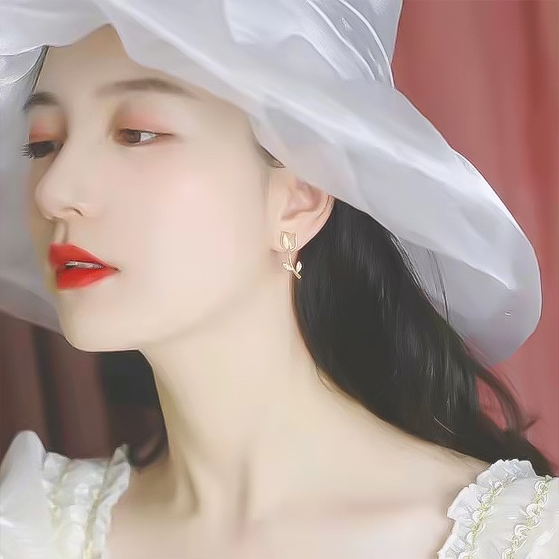 Detail Anting Bunga Tulip Perak 925 Temperamen Elegan Anting Opal Perempuan