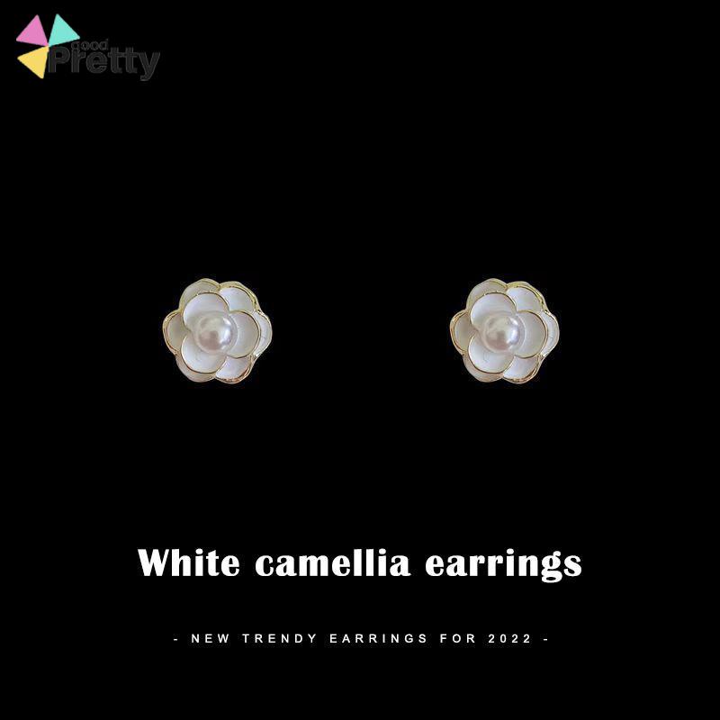 Detail Anting Camellia Mutiara Korea Fashion Sederhana Gaya Aksesori Wanita - PD