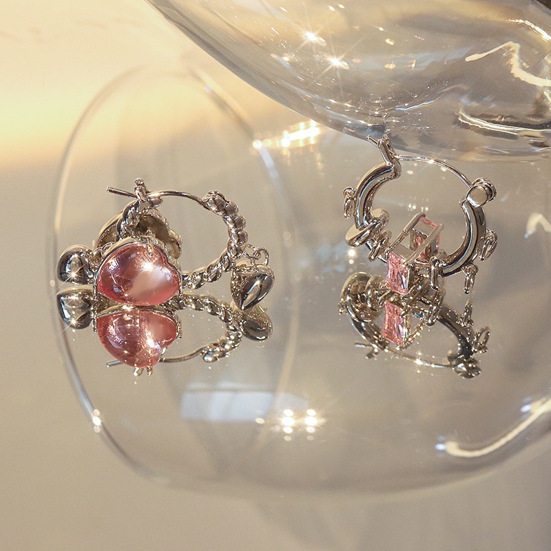 Detail Anting Cinta Berlian Merah Muda Aksesoris Kepribadian Sederhana Kasual