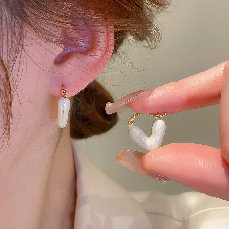 Detail Anting Cinta pink Mengkilap Aksesoris Korea Temperamen fashion Sederhana Wanita