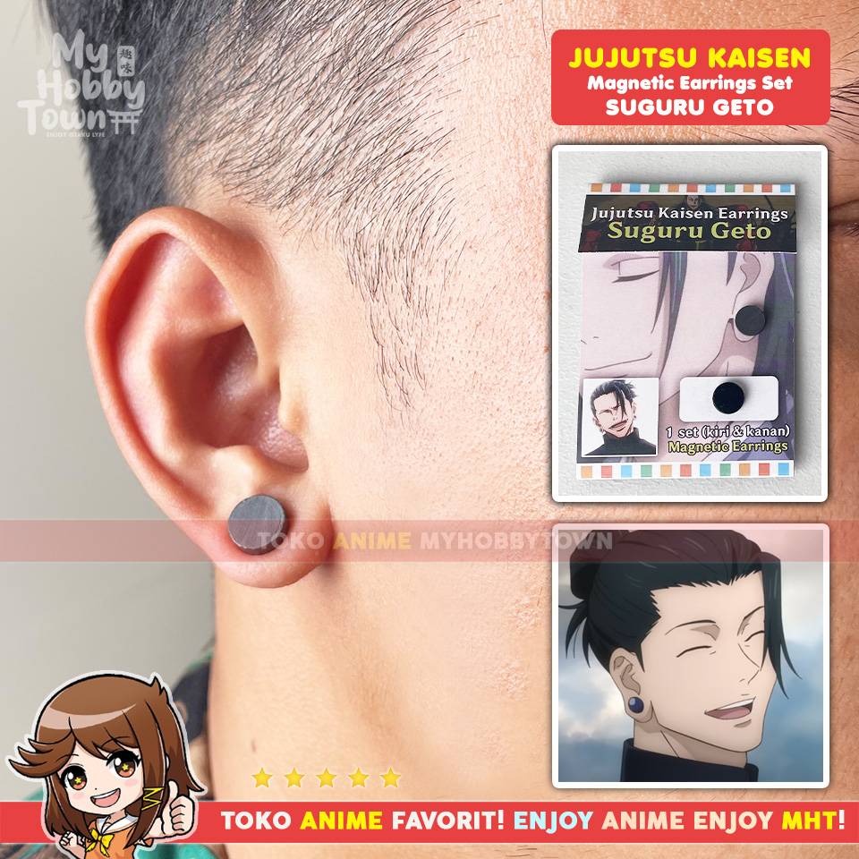 Detail Anting Cosplay Geto Suguru Anime Jujutsu Kaisen Earrings Magnet Black Hitam
