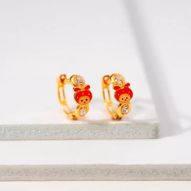 Anting Emas Jepret Anak Boneka Terong Bulat Cat- Toko Emas Gadjah