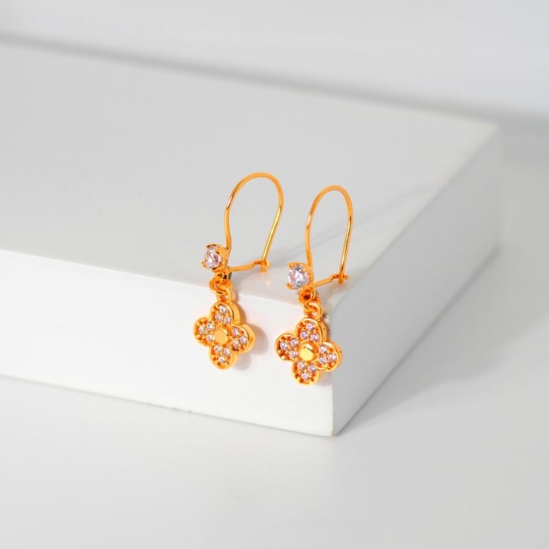 Anting Emas Kawatan Clover Mata Tabur Titik Tengah - Toko Emas Gadjah