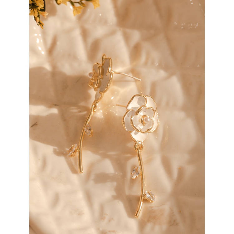 Detail Anting Enamel Bunga Mutiara Putih Zirkon Perak925 Ear Studs Korea Aksesori Untuk Gadis Manis