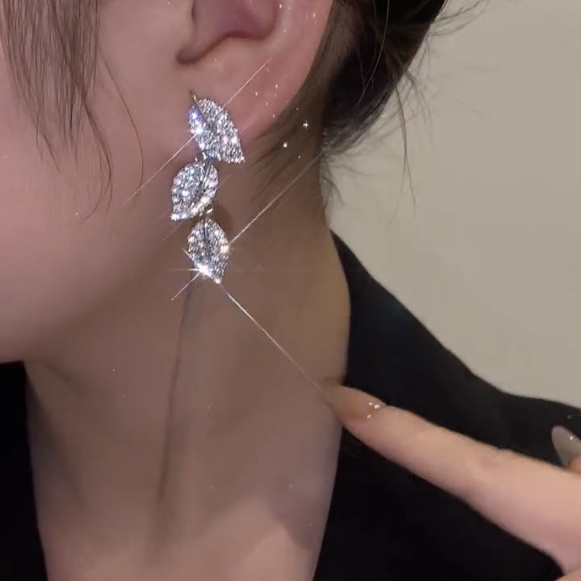 Detail Anting Gantung Panjang Model Daun Dengan Rumbai Untuk Wanita