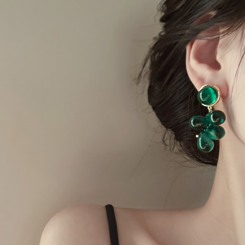 Detail Anting Gantung Panjang Model Tetesan Air Anggur Hijau Retro Simpel Untuk Wanita
