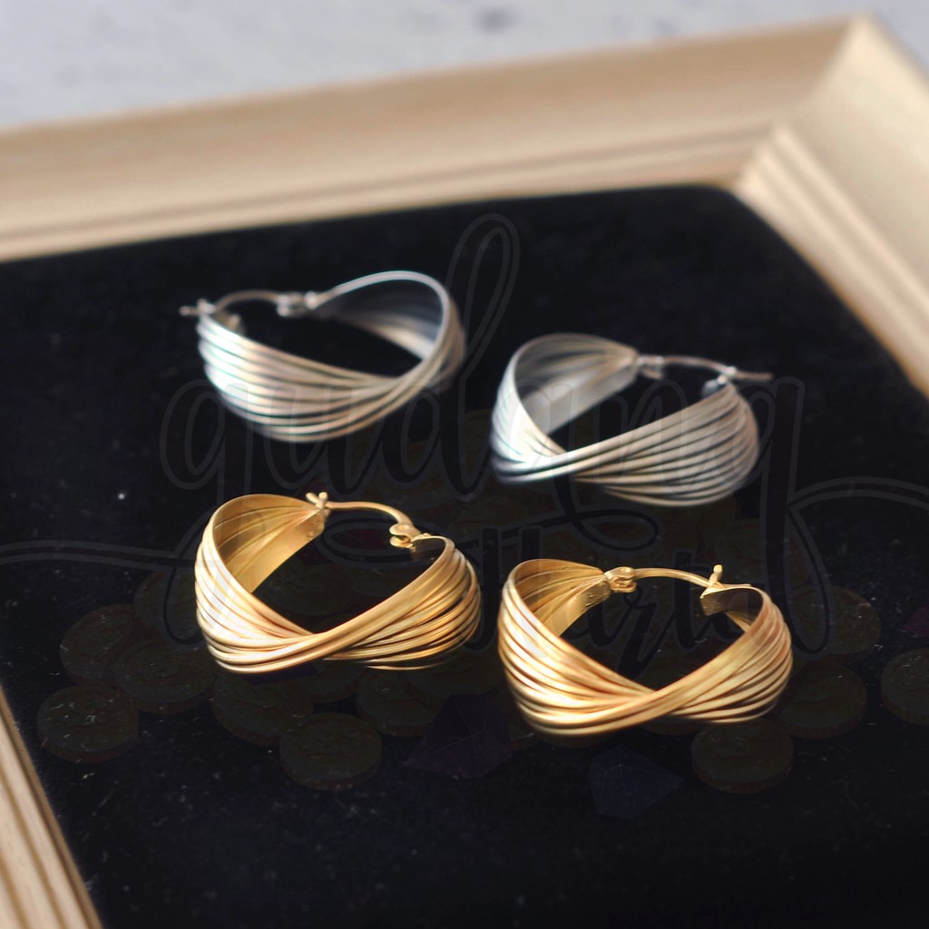 Detail Anting Gold Silver Simple Cantik Unik GH 203239