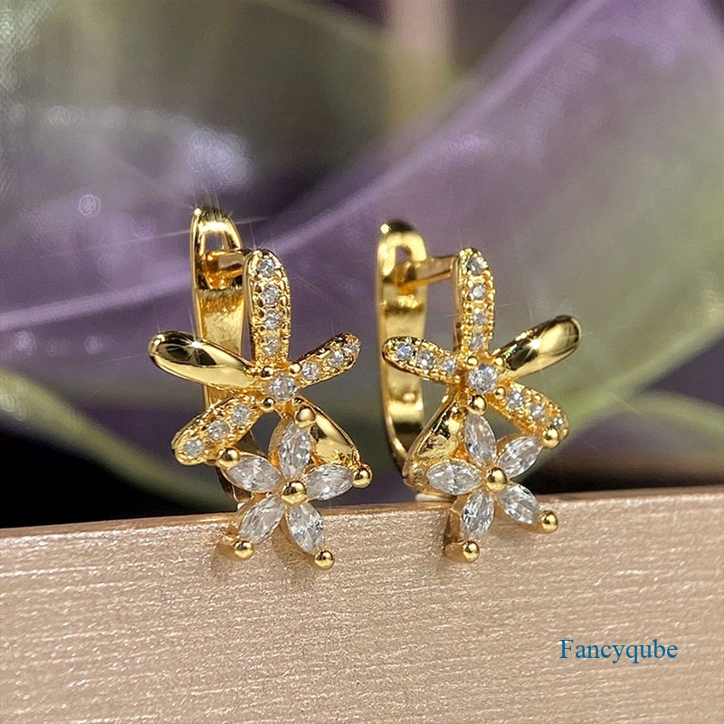 Anting Hoop Bunga Indah Warna Silver Warna Emas Tersedia Aksesoris Telinga Mewah Untuk Wanita Pakaian Sehari-Hari Perhiasan Pesta