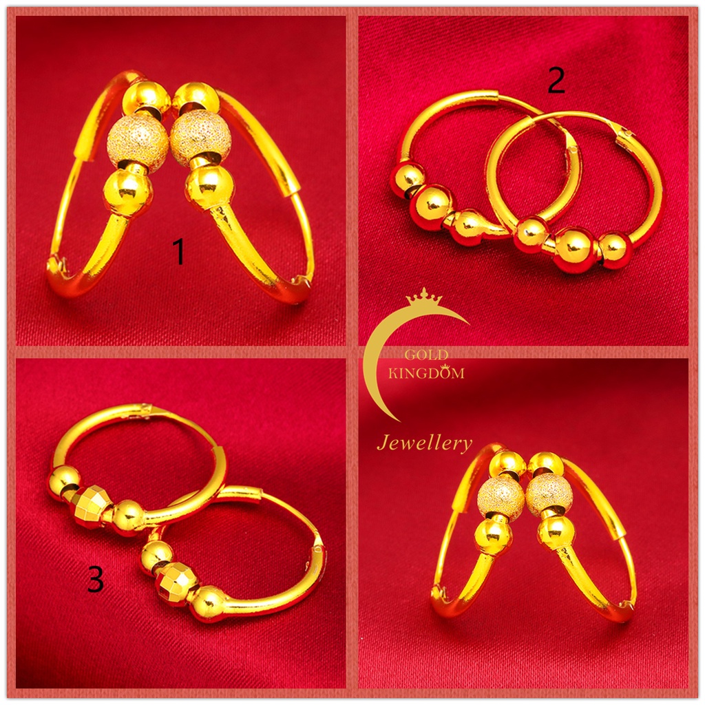 Detail Anting Hoop Manik-Manik Lapis Emas Emas Asli Kadar 375 Gaya Korea