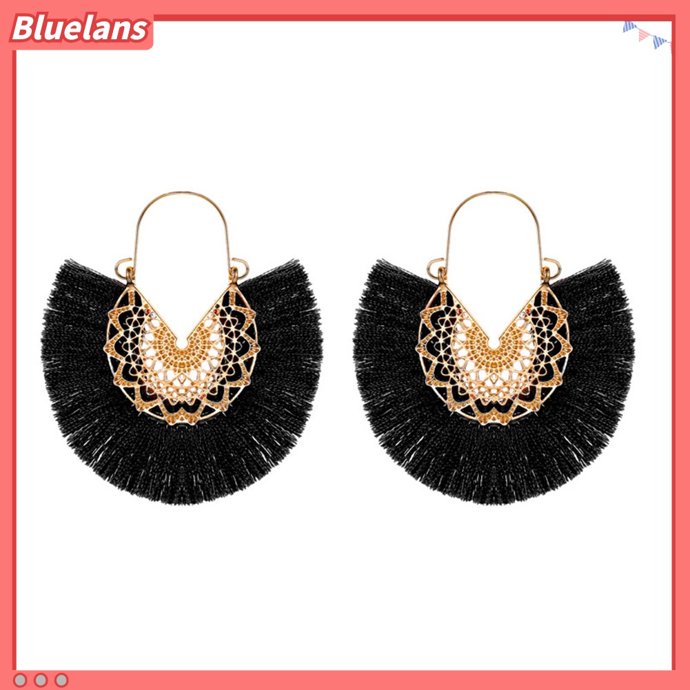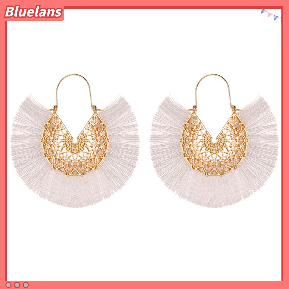 Detail Anting Hoop Rumbai Bentuk Kipas Motif Bunga Gaya Bohemian Untuk Wanita