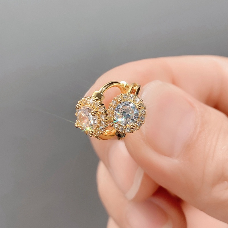 Detail Anting Hoop Warna Silver / Gold Hias Cubic Zirconia Bulat Untuk Wanita