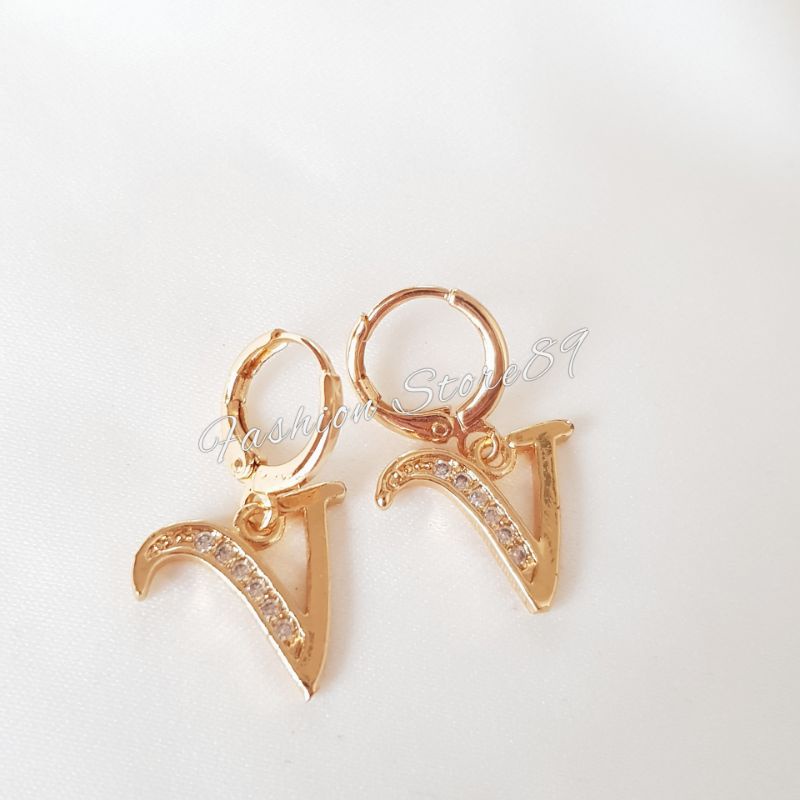Detail Anting Inisial Perhiasan Lapis Emas Anting Huruf Alphabet Dewasa