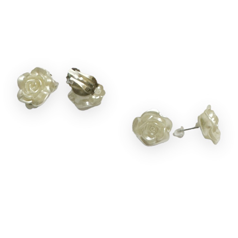 Detail Anting Jepit Hijab Tusuk Bunga Mawar Mutiara Rose Flower Pearl Earrings Clip Klip