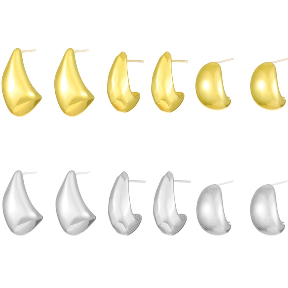 Detail Anting Kacang Halus Metalik Fashion Korea Emas Anting Paduan Berbentuk C