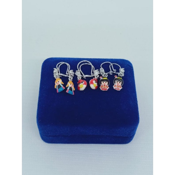 Detail anting kait anak mata putih 1 karakter cat warna S925 / anting anak perak asli lapis mas