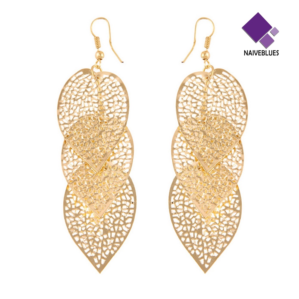 Detail Anting Kait Bentuk Daun Model Hollow Untuk Wanita