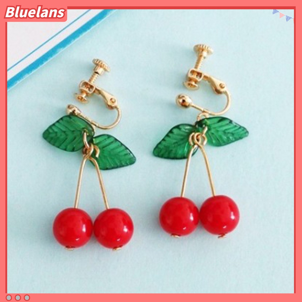 Detail Anting Kait Gantung Desain Buah Ceri Merah Daun Hijau Untuk Wanita