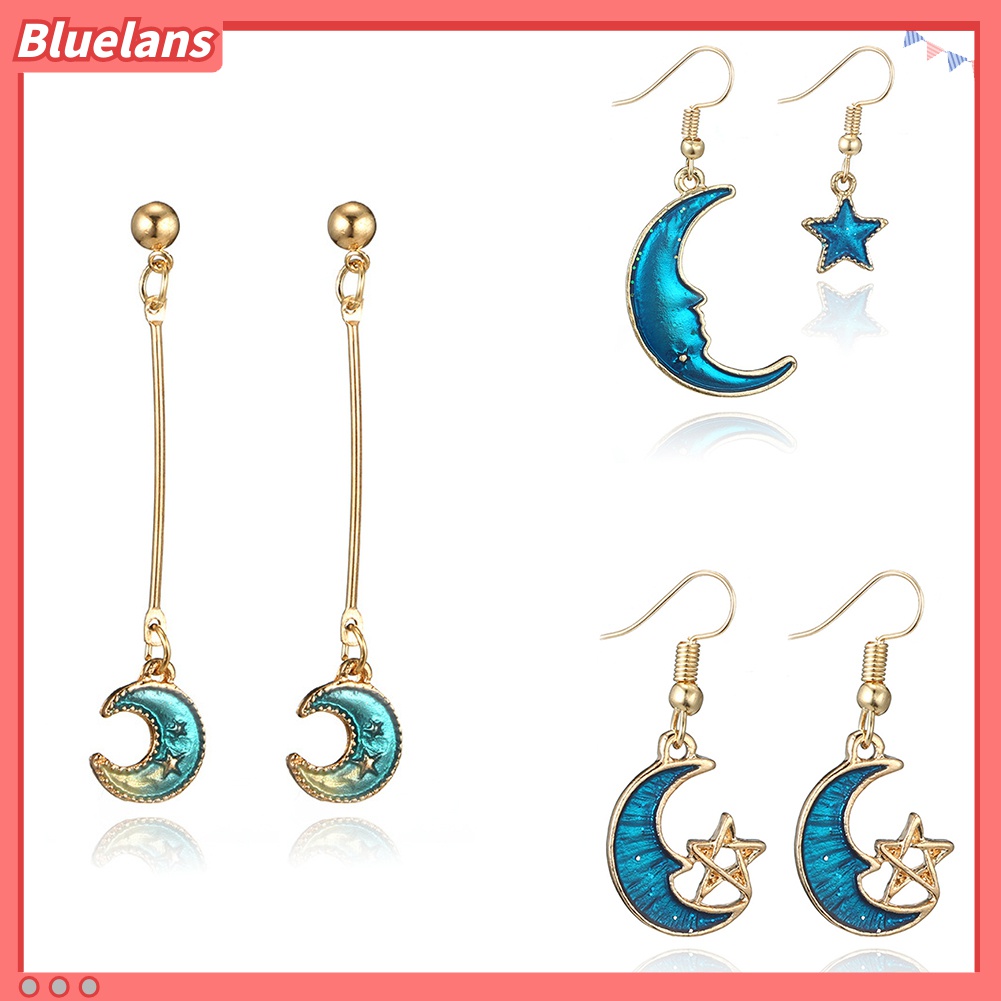 Detail Anting Kait Juntai Desain Bulan Bintang Warna Biru Untuk Wanita