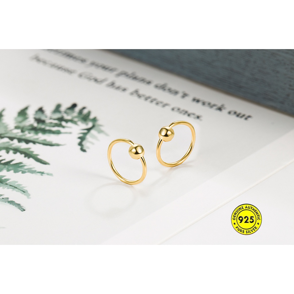 Detail Anting Kait Sterling Silver Hias Manik-Manik Bulat Untuk Wanita
