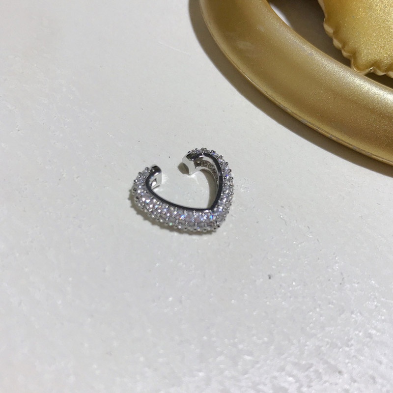 Detail Anting Klip Tanpa Tindik Desain Hati Aksen Berlian Imitasi Gaya Korea Selatan