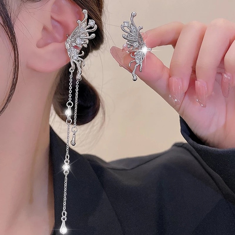 Detail Anting Klip Telinga Wanita Tanpa Tindik Desain Kupu-Kupu Rumbai Untuk Pesta Pernikahan
