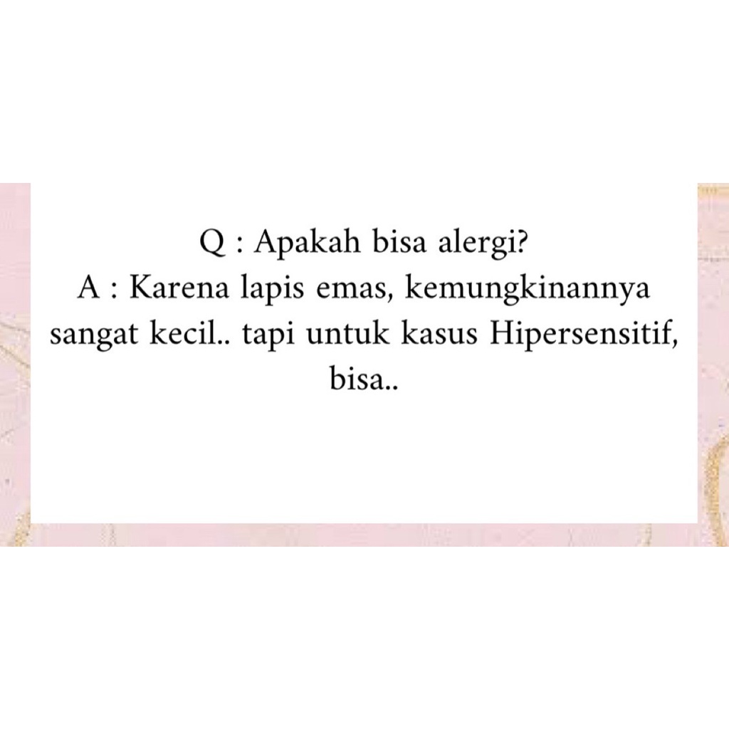 Perhiasan ini berbahan dasar rhodium dilapisi emas 18k/24k dan dan untuk permatanya terbuat dari swarovski/batu zicron yang biasa dipakai ditoko emas,pada umumnya sebagai pengganti berlian asli. tidak mengandung IRITASI dan ALERGI aman dipakai anak/balita.