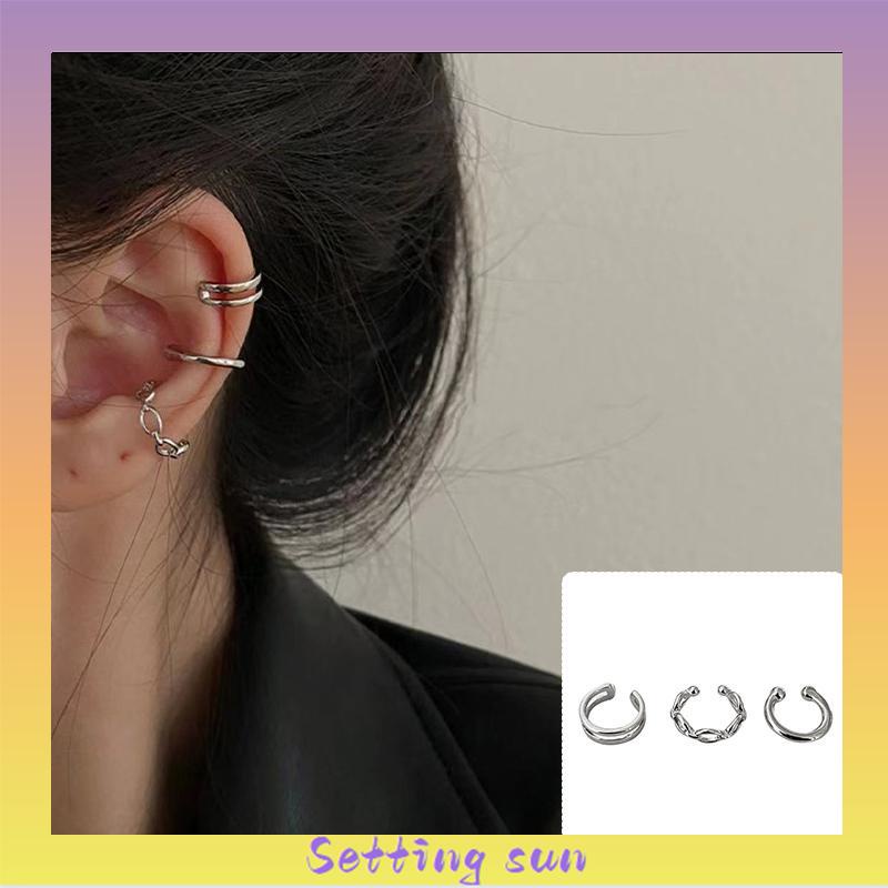 Detail Anting Kombinasi Set Klip Telinga Tanpa Lubang Telinga Wanita Niche High-end Bahasa Perancis Retro Telinga Tulang Klip TN