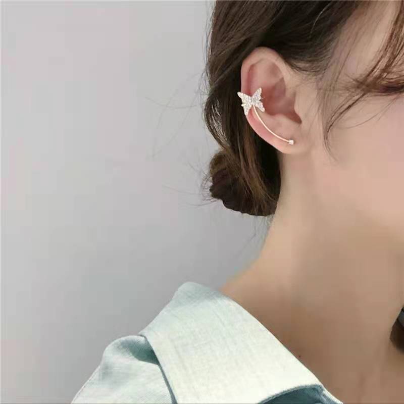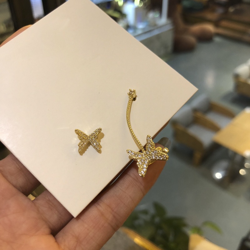 Detail Anting Kupu-Kupu Berlian Berkilau one-piece Asimetris Aksesoris Telinga Korea Wanita