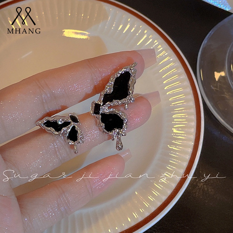 Detail Anting Kupu-Kupu Gelap Asimetris Anting Kupu-Kupu Gaya Punk Kepribadian Fashion Anting Kupu-Kupu Perak