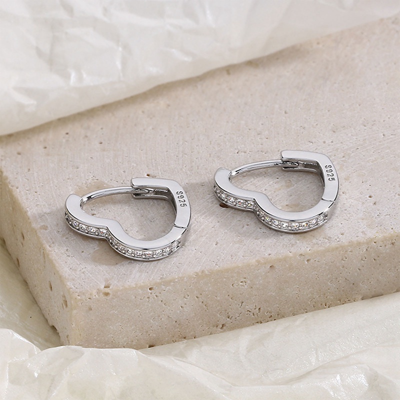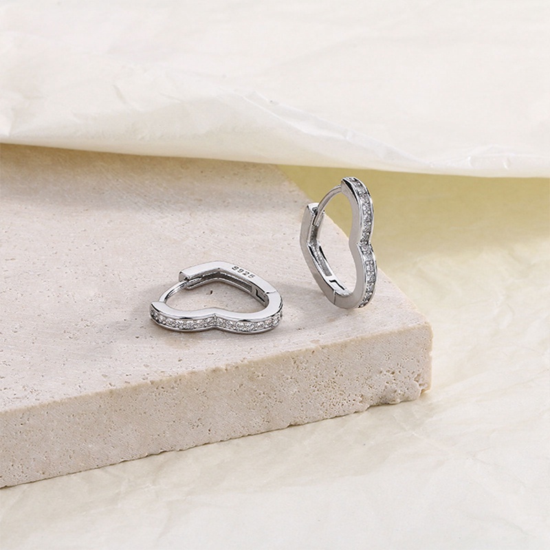 Anting Lucu Zirkon Kristal Hati Anting Hoop Sederhana Mini Perak Bersinar Anting-Anting Wanita Telinga Perhiasan Aksesoris