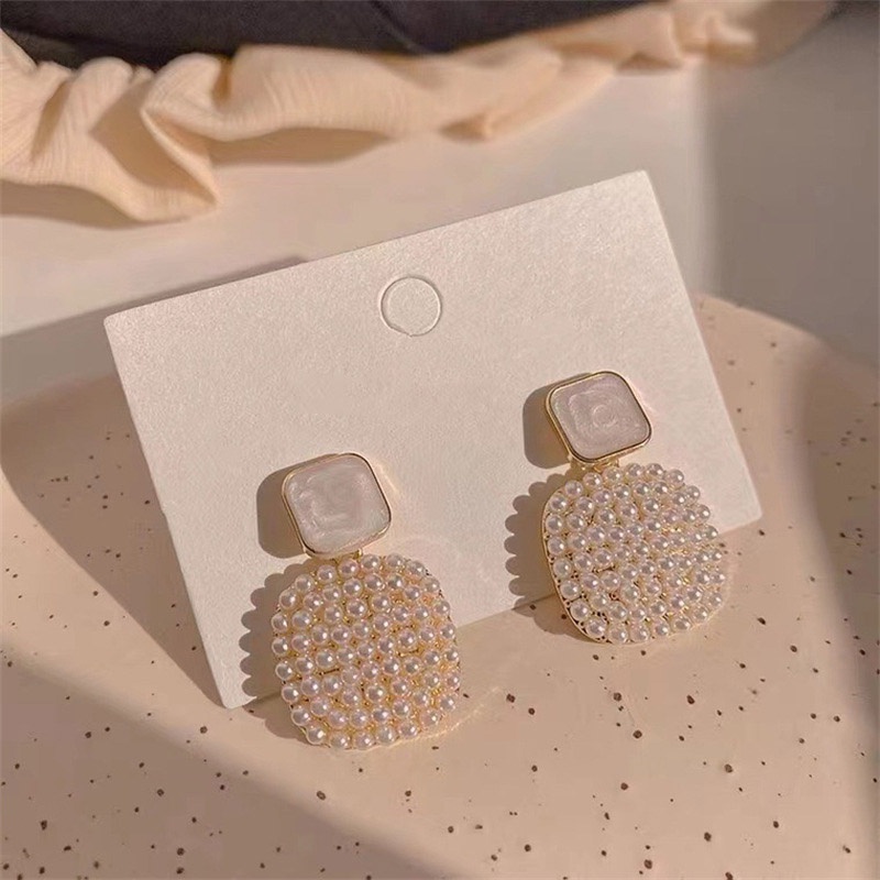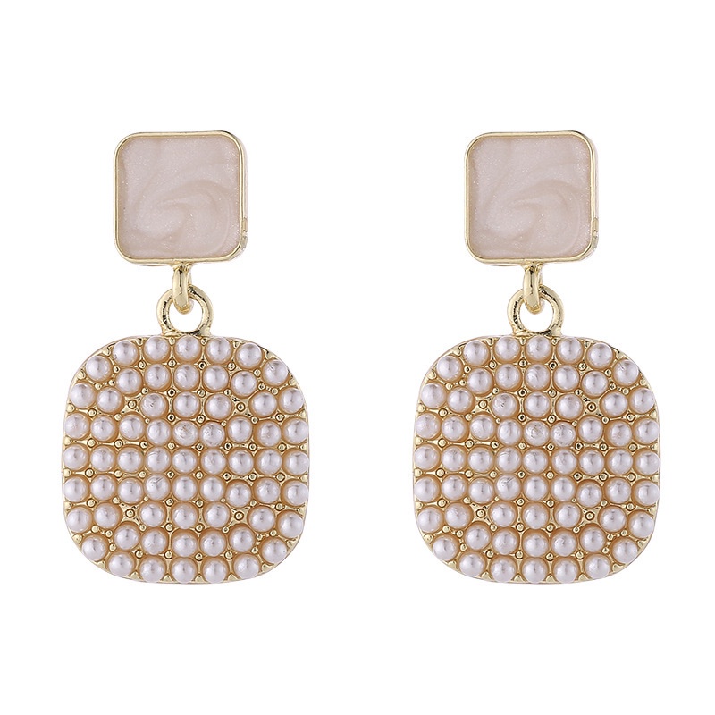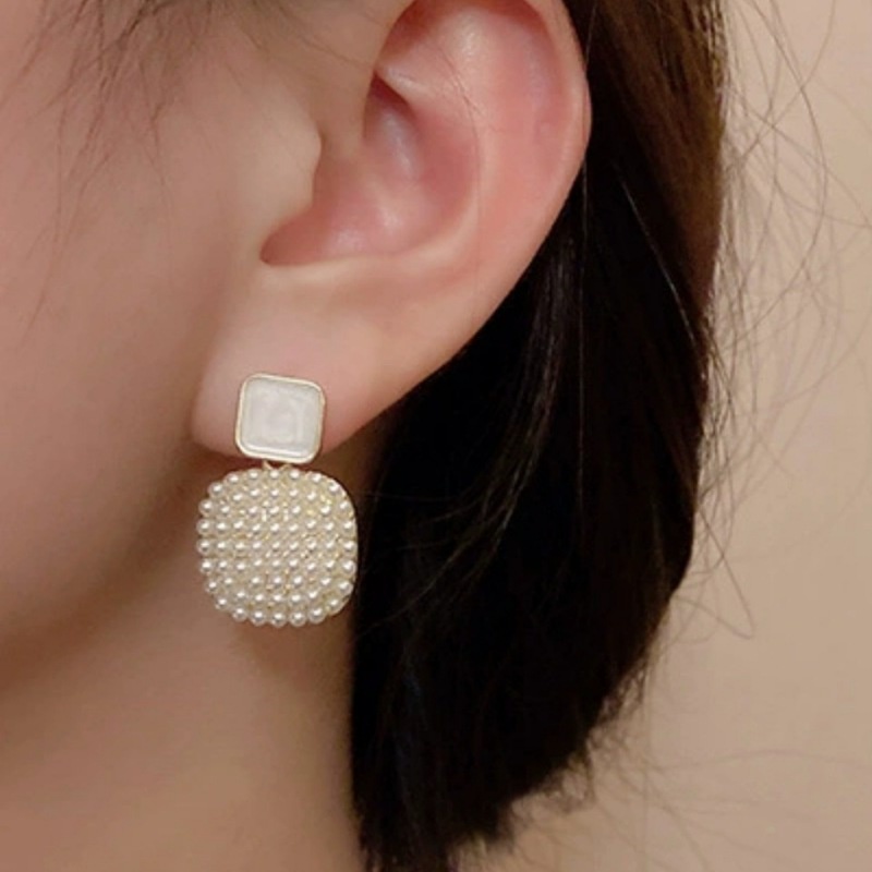 Detail Anting Mutiara Bentuk Kotak Geometris Gaya Korea