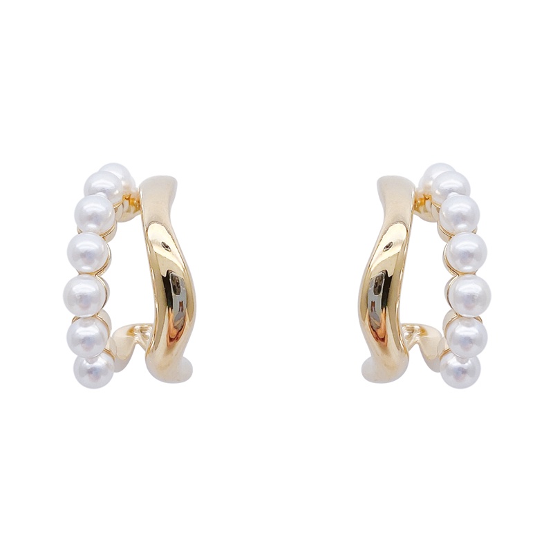 Detail Anting Mutiara Berbentuk C Baris Ganda Sederhana Aksesoris Telinga Korea Wanita