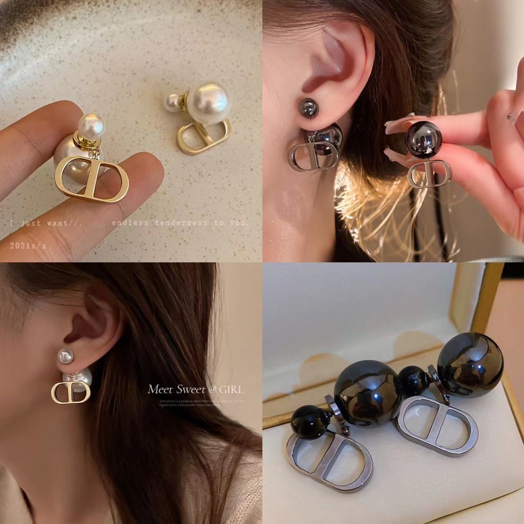 💛 Nama Anting-anting mutiara anting-anting retro huruf CD wanita