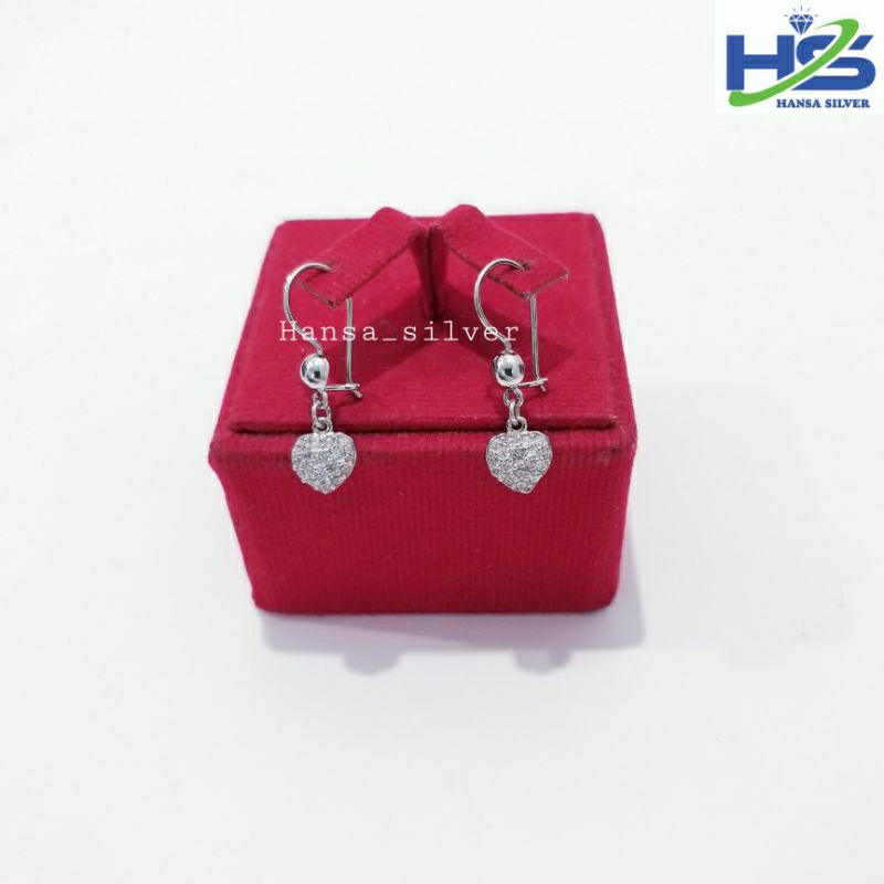 Detail Anting Perak Asli Silver 925 Lapis Emas Putih Agogo Gantungan Love Bunga - Anting Wanita Anti Karat