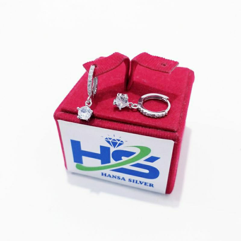 Detail Anting perak Asli Silver 925 Lapis Emas Putih Model Jepit Agogo Batu Putih - Anting Wanita Anti Karat
