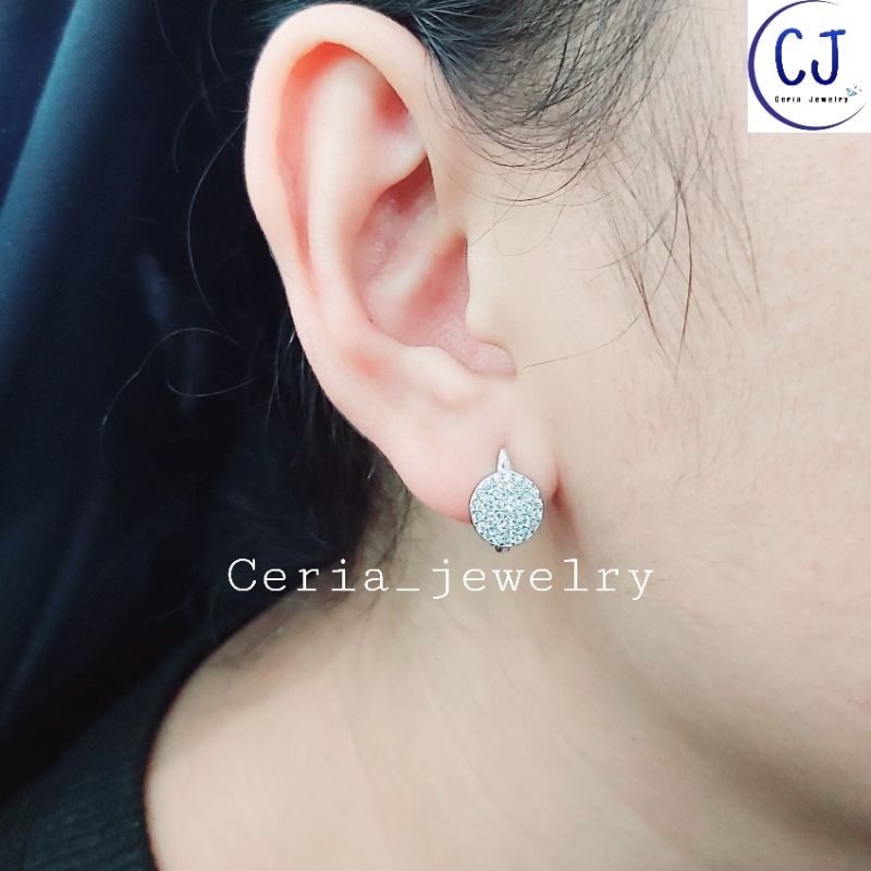 Detail Anting Perak Asli Silver 925 Lapis Emas Putih Model Jepit Bulat - Anting Wanita Anti Karat