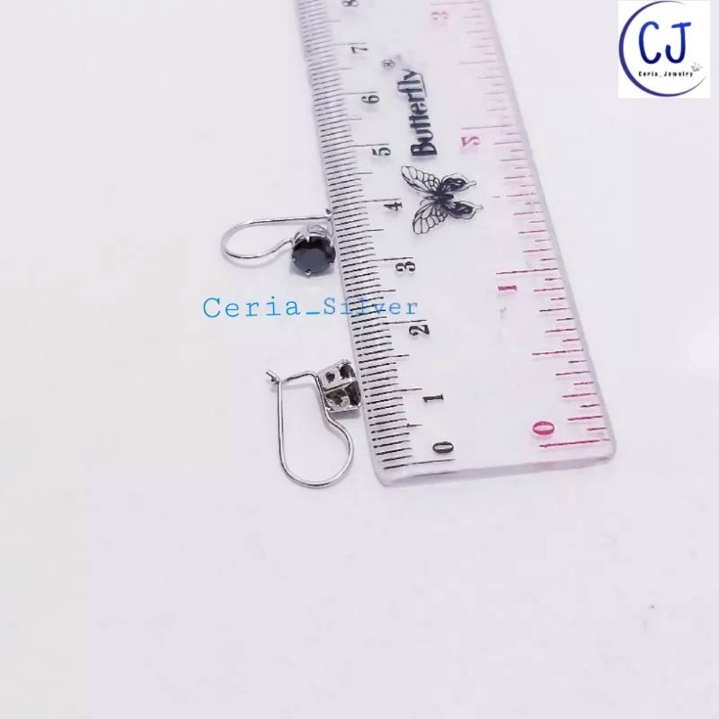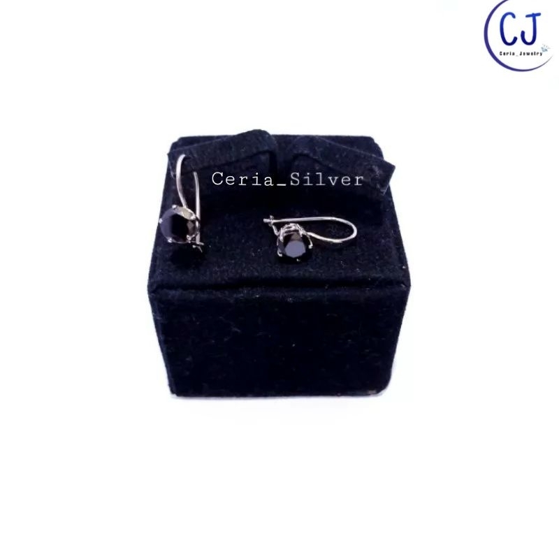 Aksesoris Fashion > Anting > Anting Perak Asli Silver Wanita 925 Lapis Emas Putih Model Desi Permata Hitam - Perak Asli Silver 925 Wanita