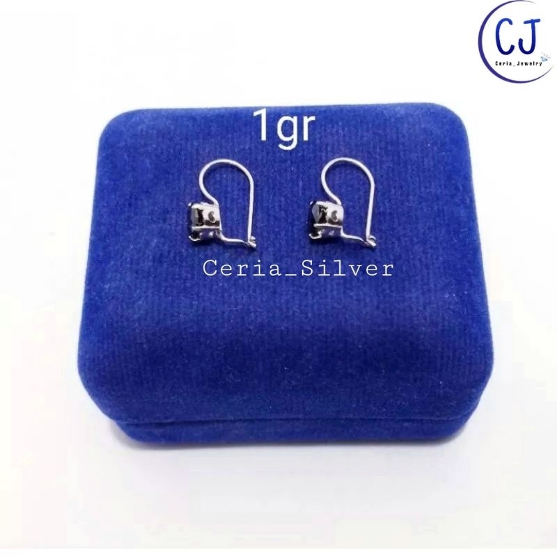 Anting Perak Asli Silver Wanita 925 Lapis Emas Putih Model Desi Permata Hitam - Perak Asli Silver 925 Wanita