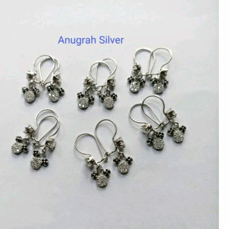 Detail Anting perak mickey mouse anak mata zircon+mata hitam / anting perak asli 925 lapis emas putih