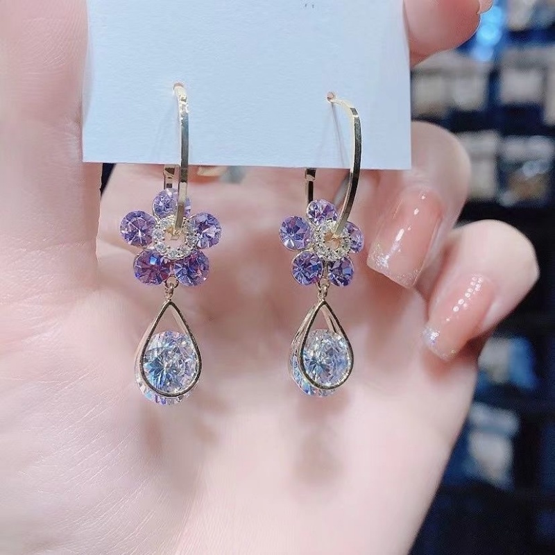 Detail Anting Rumbai Bentuk Kelopak Bunga Aksen Kristal Serbaguna
