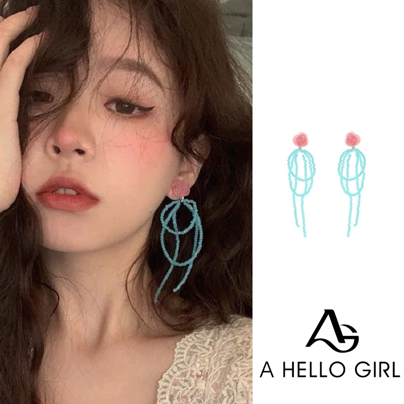 Detail Anting Rumbai Manik-Manik Bunga Warna Kontras Gaya Korea Untuk Wanita