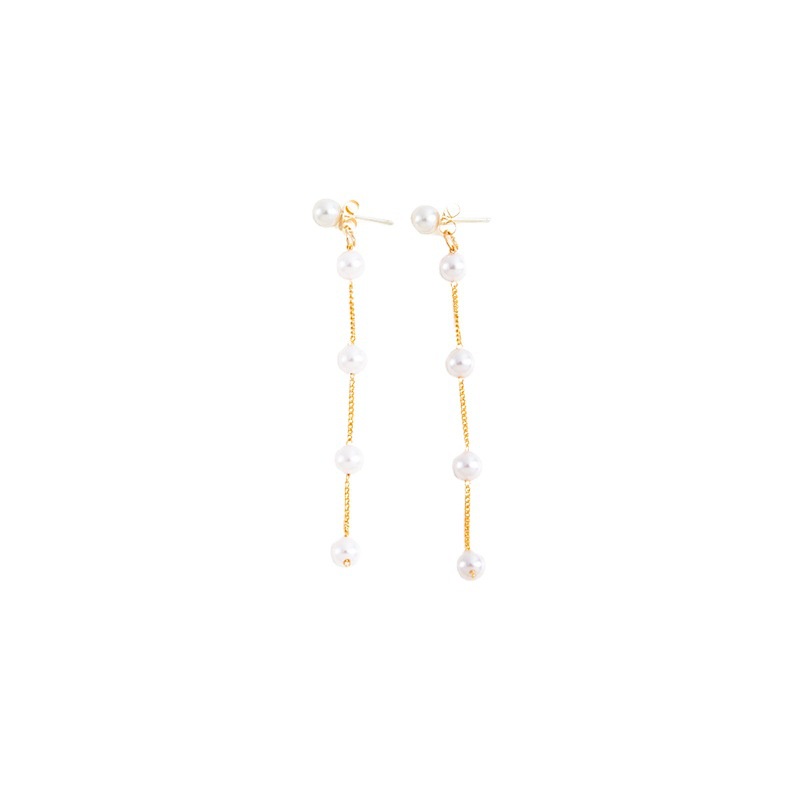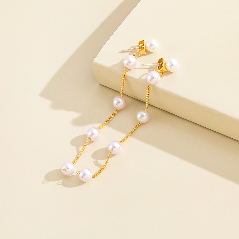 Detail Anting Rumbai Mutiara Imitasi Panjang Temperamen Yang Modis Dan Sederhana Elegan Vintage Ins Earrings Wanita 1pasang