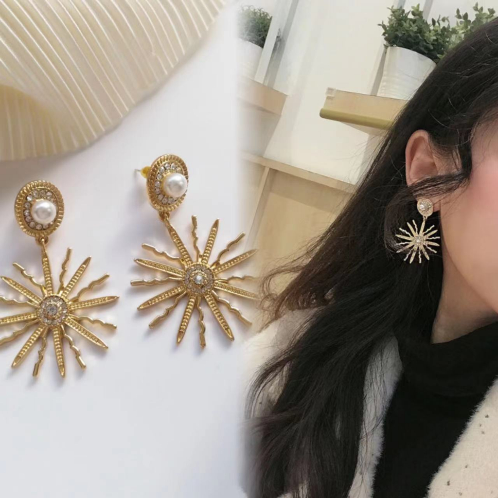 Detail Anting S925 silver needle Bentuk Bunga Matahari Gaya Eropa Dan Amerika Untuk Wanita sun flower